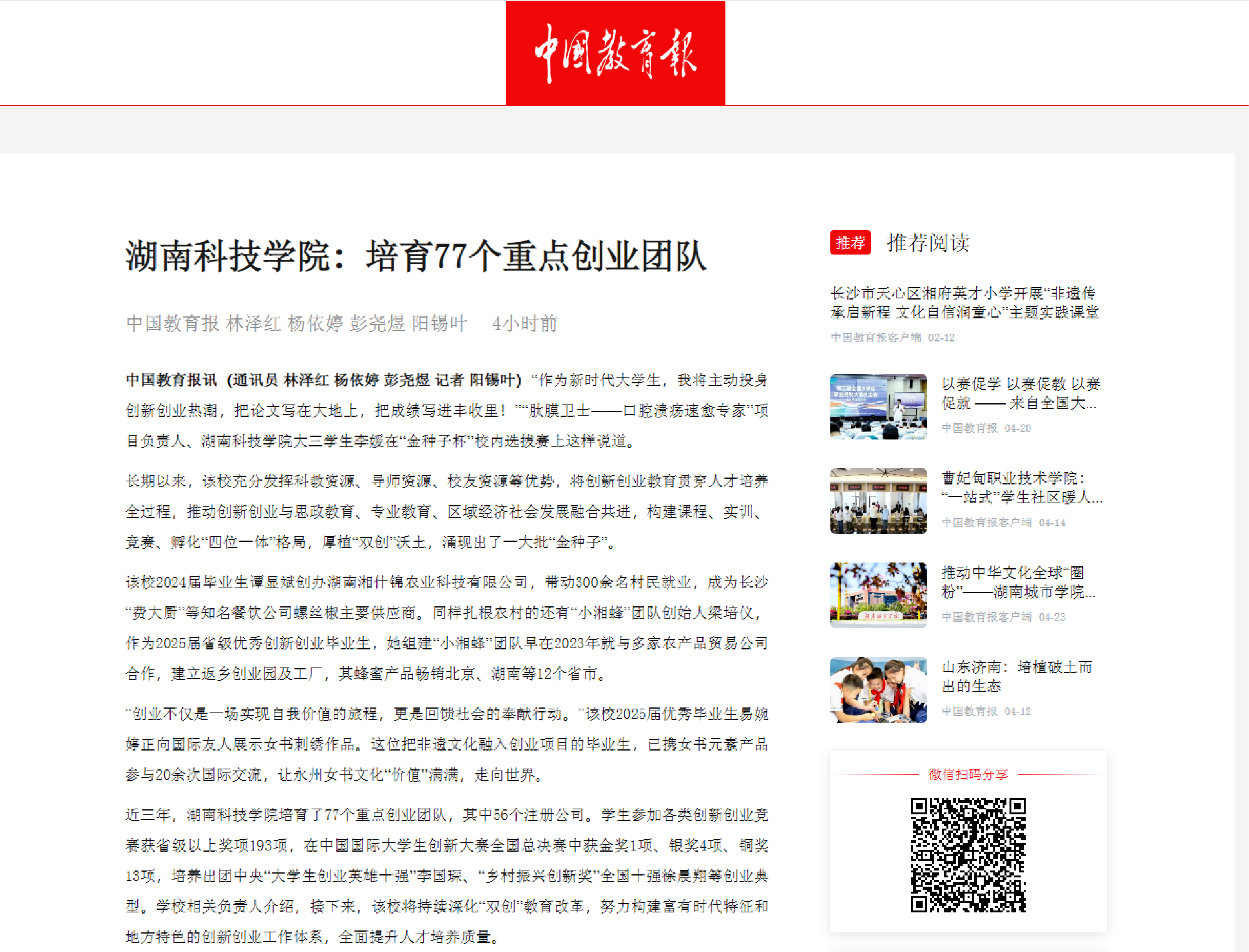 相关举措与典型事迹被中国教育报、湖南日报、学习强国等媒体报道90余次。