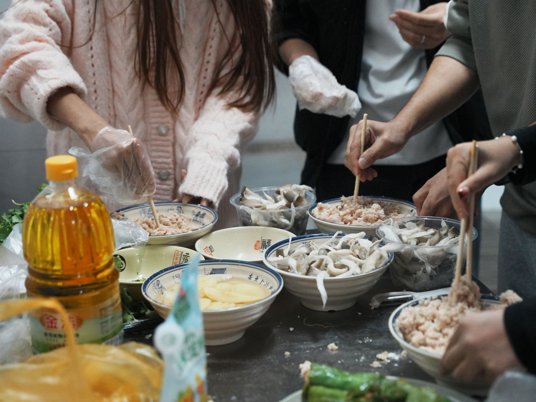 “不同食材要分区处理”,“生熟要分开放”,下午四点,竹园食堂后厨已是一片忙碌的景象,参与活动的同学们在食堂厨师和老师的指导下,严格按照标准规范操作从蔬菜清洗、分拣到切配处理的每个环节,掌握了食材加工技能和安全要点。