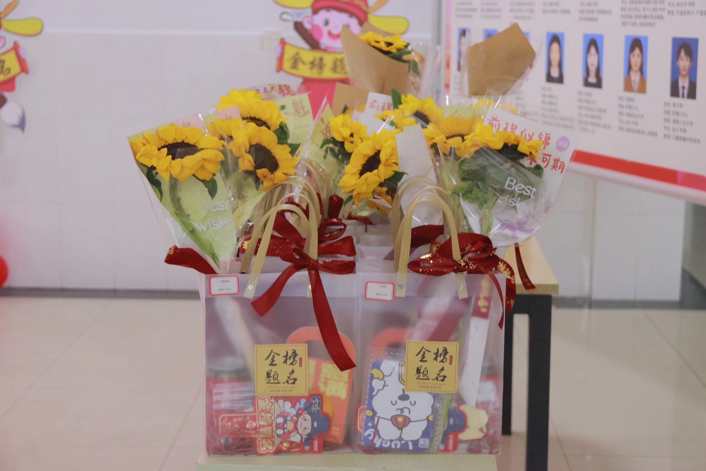 最让学子们动容的,是学院精心设计的“考研加油礼包”。礼包里每一样物品都藏着“小心思”:橙子谐音“心想事成”,明艳的向日葵寓意“一举夺魁”,定制的加多宝凉茶暗含“考分多加”的美好祝愿,还有学弟学妹们亲笔书写的“金榜题名”贺卡,让不少学子直呼“瞬间被治愈”。