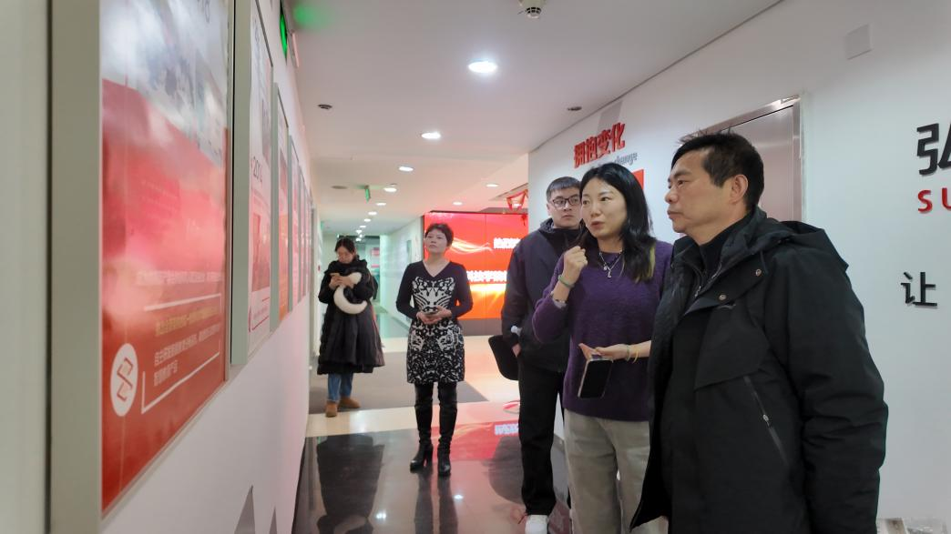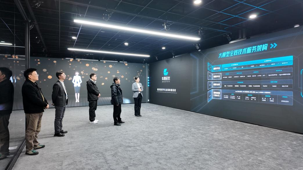在弘成科技发展有限公司,调研团队参观了产学研合作基地,并就人工智能大模型在文创领域的落地场景、技术瓶颈及未来合作方向进行了深度探讨。