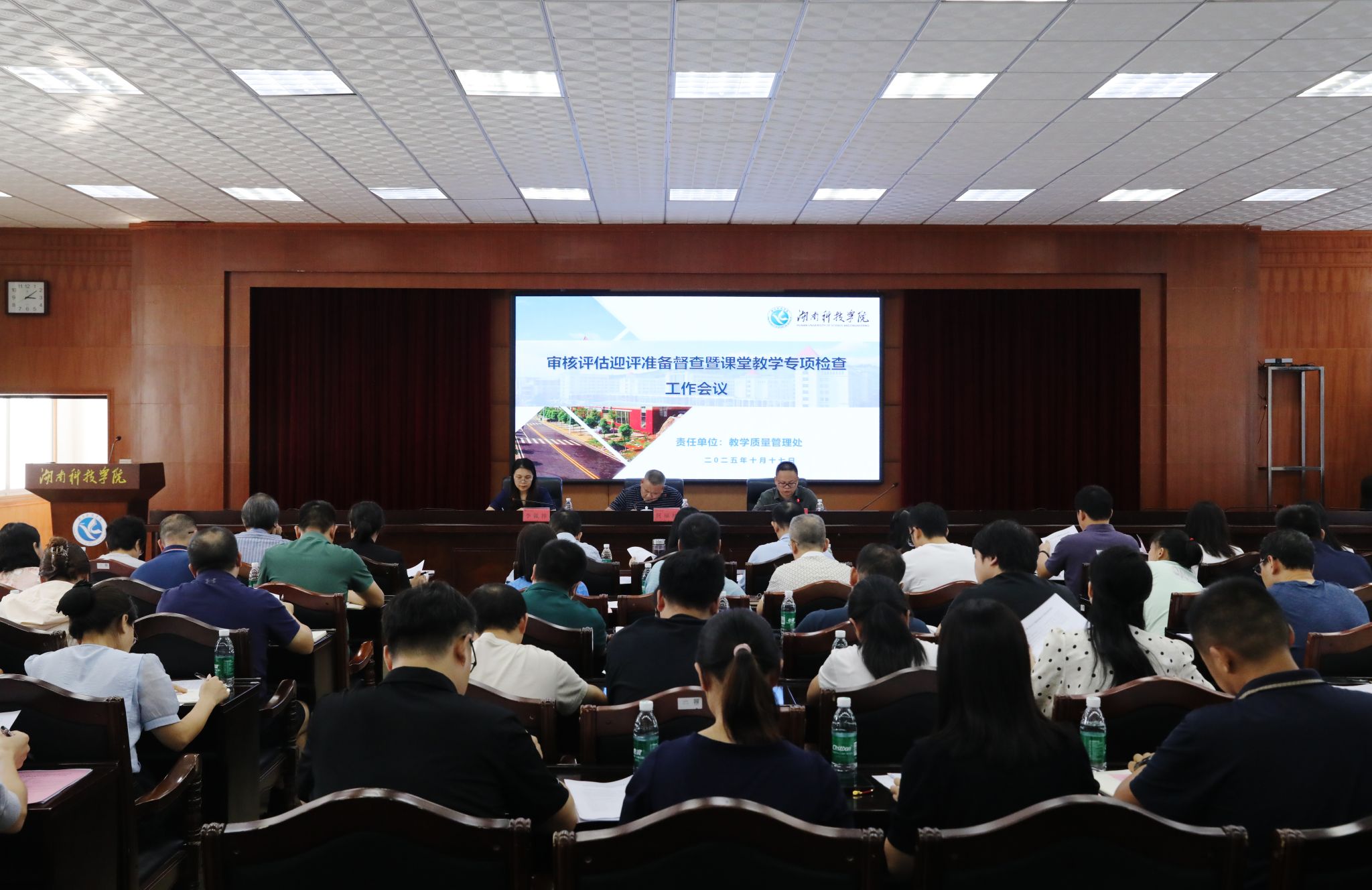 会上,教学质量管理处处长李文围绕本次督查的核心目标,详细解读了任务清单、督查标准与重点内容。根据会议部署,本次督查采用 “校领导分组带队”的方式,实现对所有二级学院及相关职能部门的全覆盖督查。各单位需严格对照督查要求,全面开展自查自纠、查漏补缺,确保高标准、高质量完成各阶段建设任务。