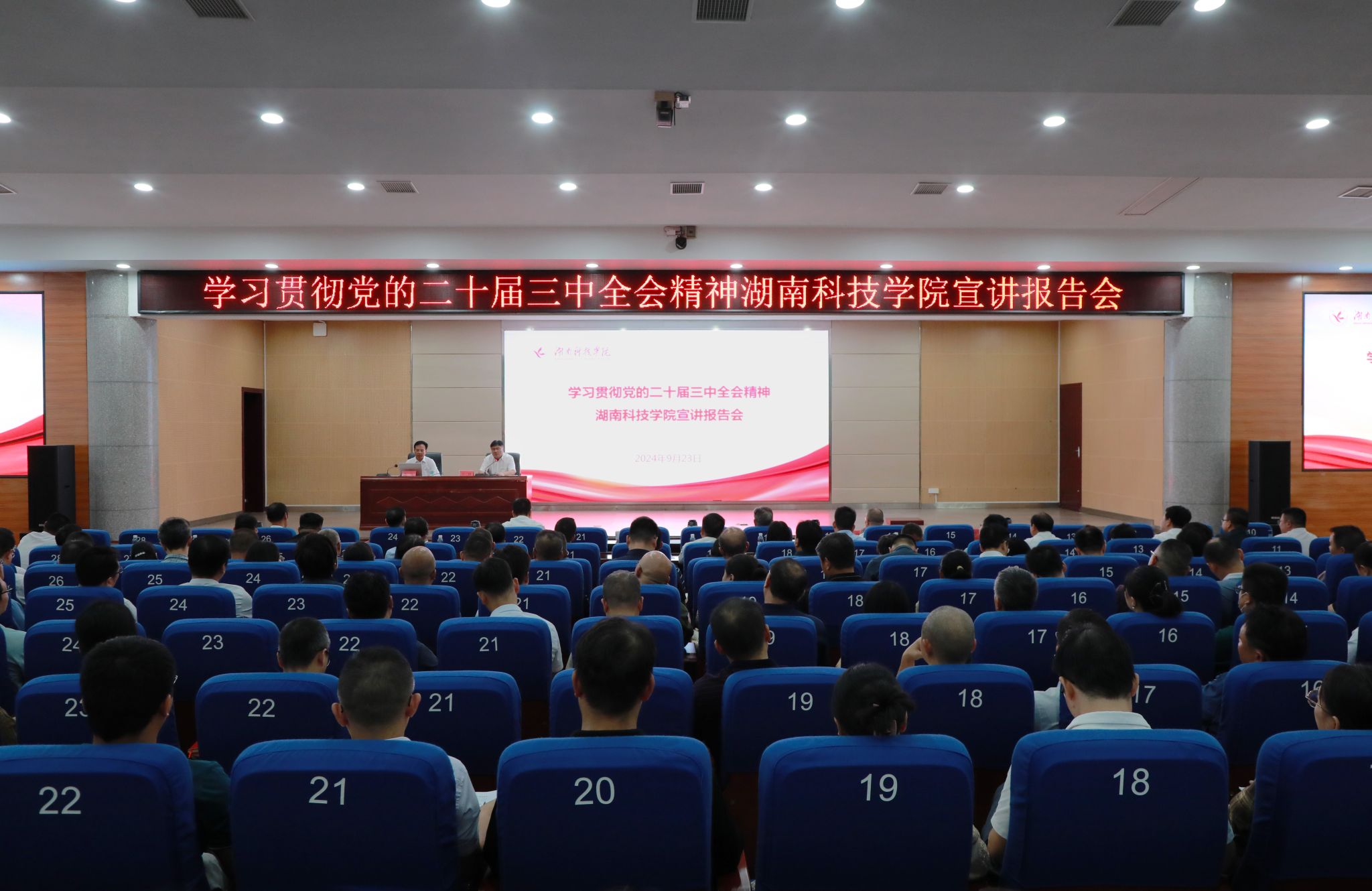 9月23日,学校举行学习贯彻党的二十届三中全会精神宣讲报告会暨党委理论学习中心组(扩大)第8次集体学习,湖南农业大学党委书记陈弘应邀来校作专题宣讲报告,全体在校党委委员、校领导,全体中层干部,机关副科级以上干部,全体辅导员,马克思主义学院教师以及学生代表共450余人参加会议,会议由校党委书记李钢主持。